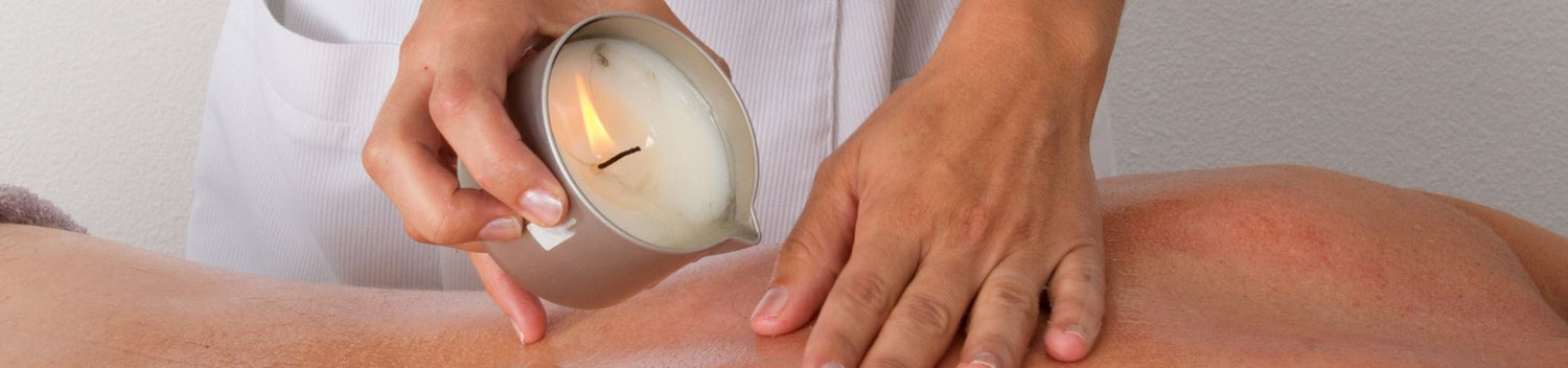 Kerze ca. 5 Minuten brennen lassen, Flamme löschen, geschmolzenes Kerzenwachs vorsichtig in die Hand schütten und gleich in die Haut einmassieren.